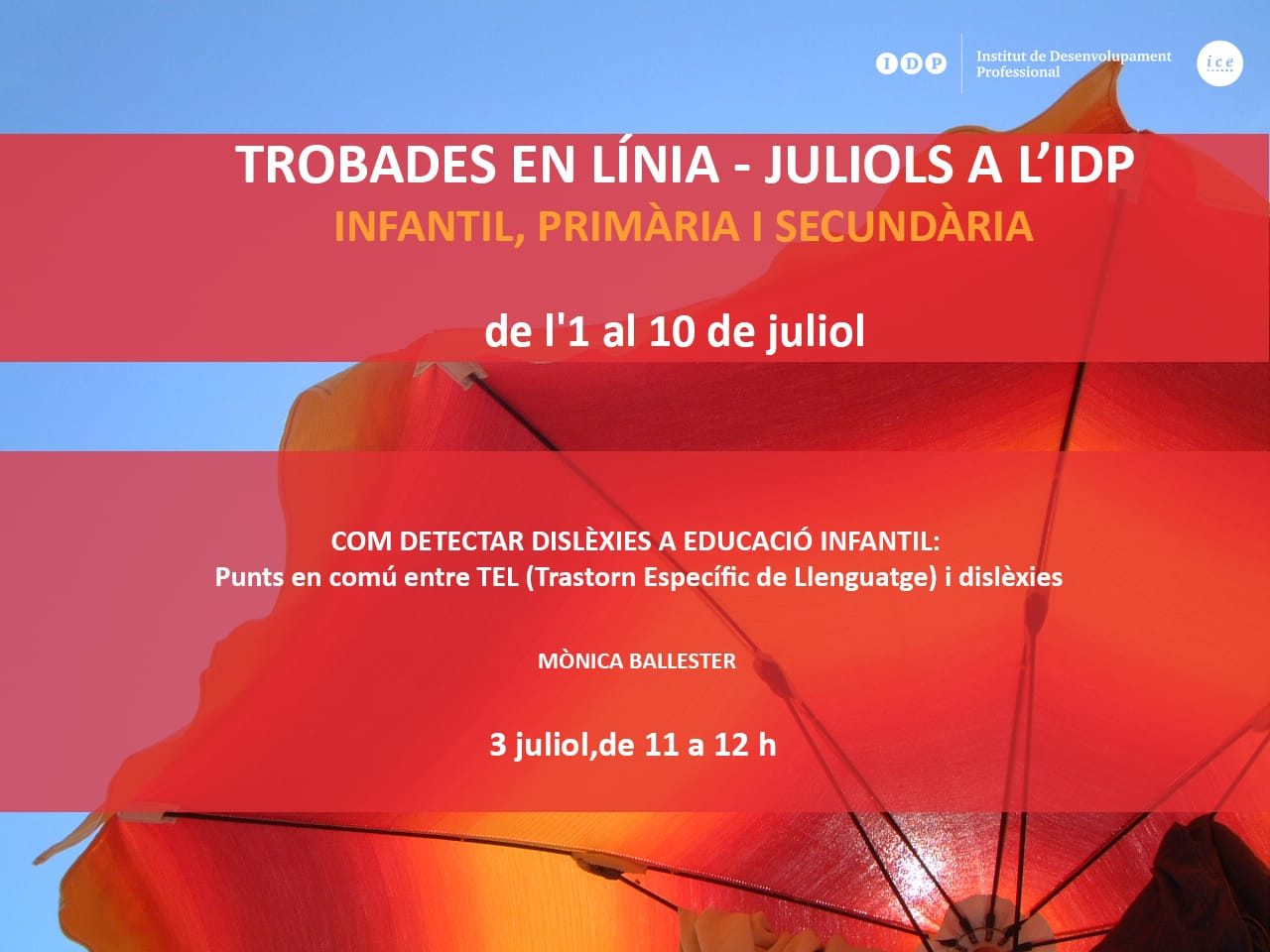Conferencia Online IDP - Universidad de Barcelona: "Cómo detectar dislexias en educación Infantil: Puntos en común entre TEL/TDL (Trastorno Específico del Llenguaje/Trastorno del Desarrollo del Lenguaje) y dislexias"3 de julio 2020